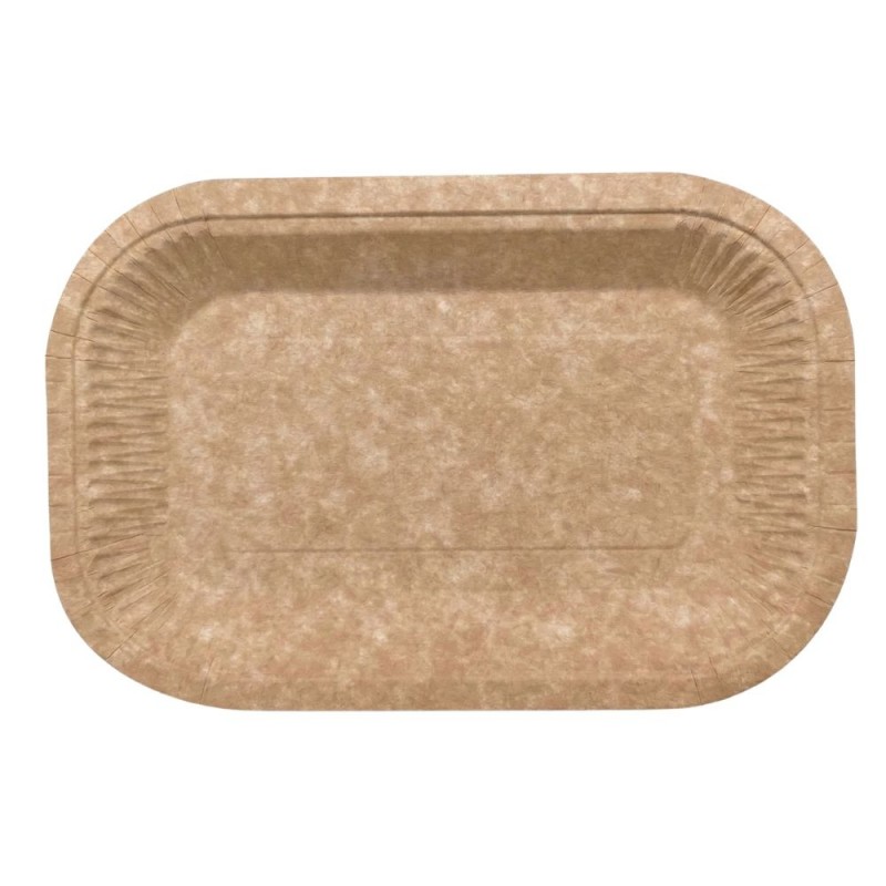 Bandeja biodegradable de cartón kraft antigrasa de 23 x 15 cm, apta para microondas y perfecta para servir o transportar raciones individuales en hostelería, Take Away o eventos.