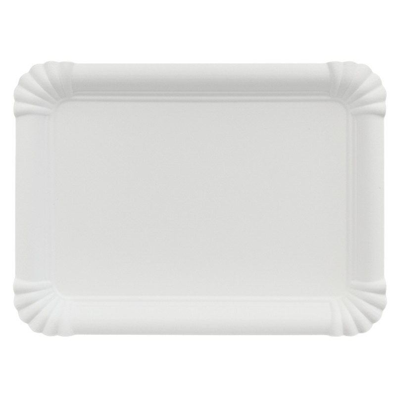 Bandejas de cartón blancas de 18 x 24 cm rectangulares. Perfectas para pastelería y presentación de alimentos. Estas bandejas de cartón desechables están fabricadas en cartón de 450gr/m2. Son biodegradables y una opción ecológica para negocios y eventos. Perfectas para presentar y transportar productos de repostería, bollería, pasteles, tartas o aperitivos de manera elegante. Para el uso directo con alimentos, utilizar blonda o papel alimentario.