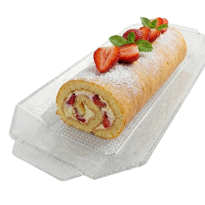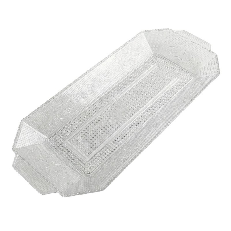 La bandeja rectangular Lux transparente de 37 x 14,5 cm, fabricada en poliestireno alimentario PS, es ideal para servir aperitivos, tartas, carnes o pescados, ofreciendo resistencia, elegancia y una presentación cuidada.