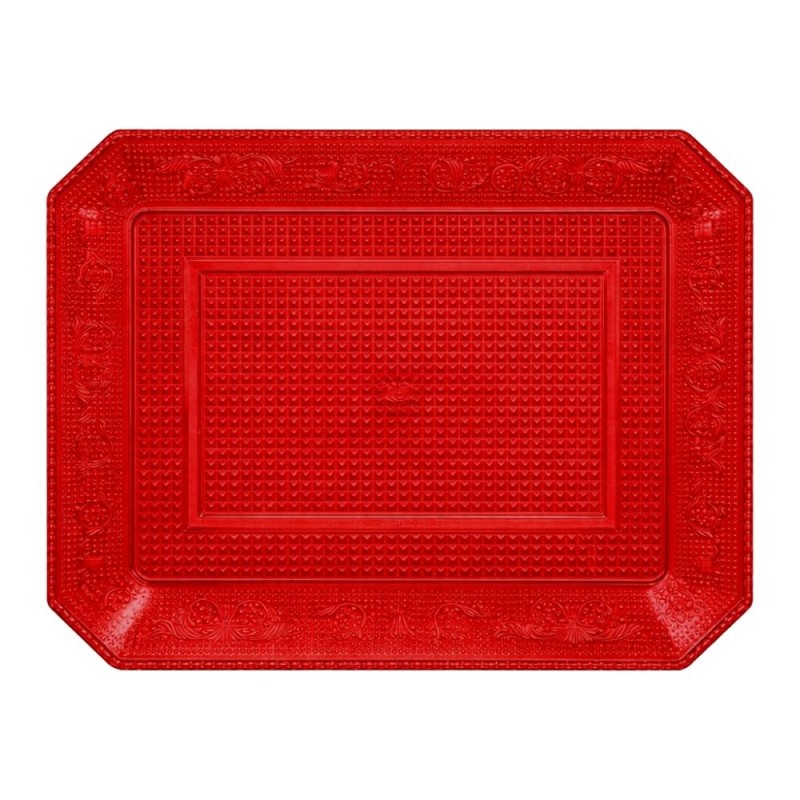 La bandeja rectangular Lux de plástico rojo translúcido está pensada para aportar una combinación perfecta de funcionalidad y estilo en todo tipo de presentaciones culinarias. Su acabado brillante y su intenso color rojo realzan visualmente los alimentos, aportando una estética moderna y elegante a cualquier mesa. Gracias a sus dimensiones de 28 x 23 cm, ofrece una superficie amplia y equilibrada que permite presentar los productos de forma ordenada y atractiva.