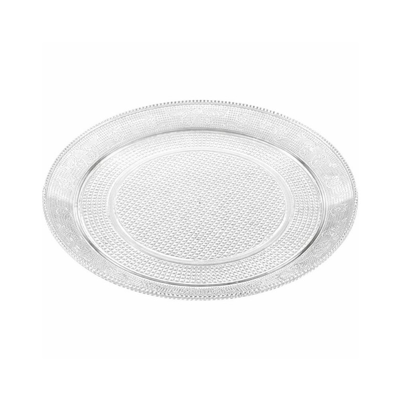 Su formato redondo permite una disposición equilibrada de tartas, pasteles, embutidos, piezas de sushi, canapés o raciones individuales. La transparencia del material aporta una imagen limpia y profesional, perfecta para mostrar el producto directamente al cliente en vitrinas, buffets o servicios de mesa. Aunque no es apta para microondas, esta bandeja puede reutilizarse tras un lavado a mano cuidadoso, lo que la convierte en una opción económica y sostenible para usos múltiples.
