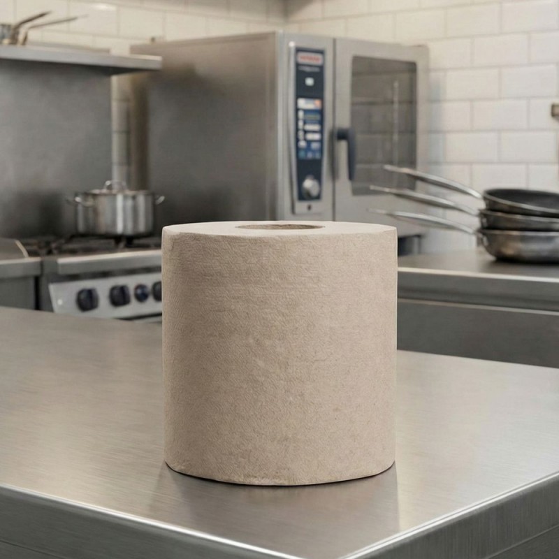Cada bobina ofrece 304 servicios a lo largo de sus 101 metros, con un ancho de 20 cm y un mandril de Ø 7,2 cm compatible con la mayoría de dispensadores industriales. Este formato reduce la frecuencia de reposición y optimiza el consumo diario, especialmente en espacios donde la rotación de usuarios es alta. El color natural refuerza una imagen más sostenible sin renunciar a una excelente capacidad de secado y confort.