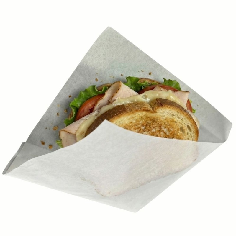 Bolsas de Papel Antigrasa Blancas 15x15 cm con Apertura en Dos Lados. Fabricadas en papel parafinado de 35 gramos, estas bolsas blancas con apertura doble son ideales para envolver alimentos como hamburguesas, sándwiches, hot dogs, bollería y más. Su acabado antigrasa ayuda a mantener los productos en perfecto estado. Además, son biodegradables y reciclables, ofreciendo una alternativa ecológica y responsable para tu negocio.