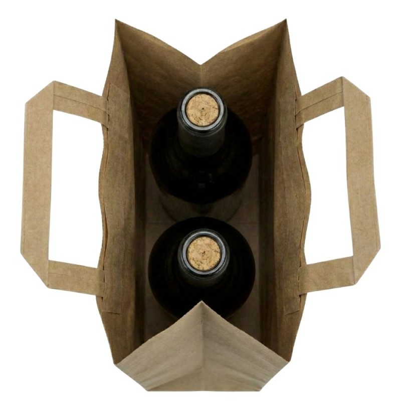 Estas bolsas de papel kraft con asas para botellas de 18+9x37 cm son una solución resistente y cuidada para transportar botellas con total seguridad. Fabricadas en papel kraft de 80 g/m², destacan por su rigidez, estabilidad y buena presentación, lo que las convierte en una opción ideal para entregar botellas de vino, licores, aceites o cualquier producto embotellado que requiera un envoltorio fiable. Su acabado kraft transmite una imagen natural y profesional, perfecta para tiendas que buscan un empaquetado sostenible y atractivo.