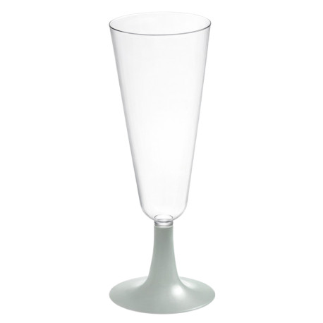 Copas de Cava de Plástico PS (Poliestireno) Transparentes y pie Dorado, con capacidad para 150 cc. Estas Copas de Cava / Champagne de Plástico son ideales para cualquier tipo de Cava, Champagne, Sidra, Vino, Sorbetes, etc.