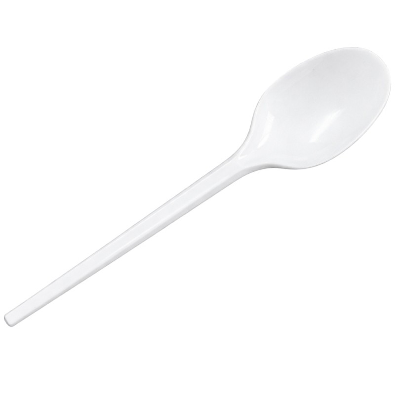 Cucharas de Plástico Blancas Desechables de 16,5cm. Fabricadas en PS (Poliestireno). Prácticas a la hora de celebrar cualquier evento, fiestas, comidas, etc.