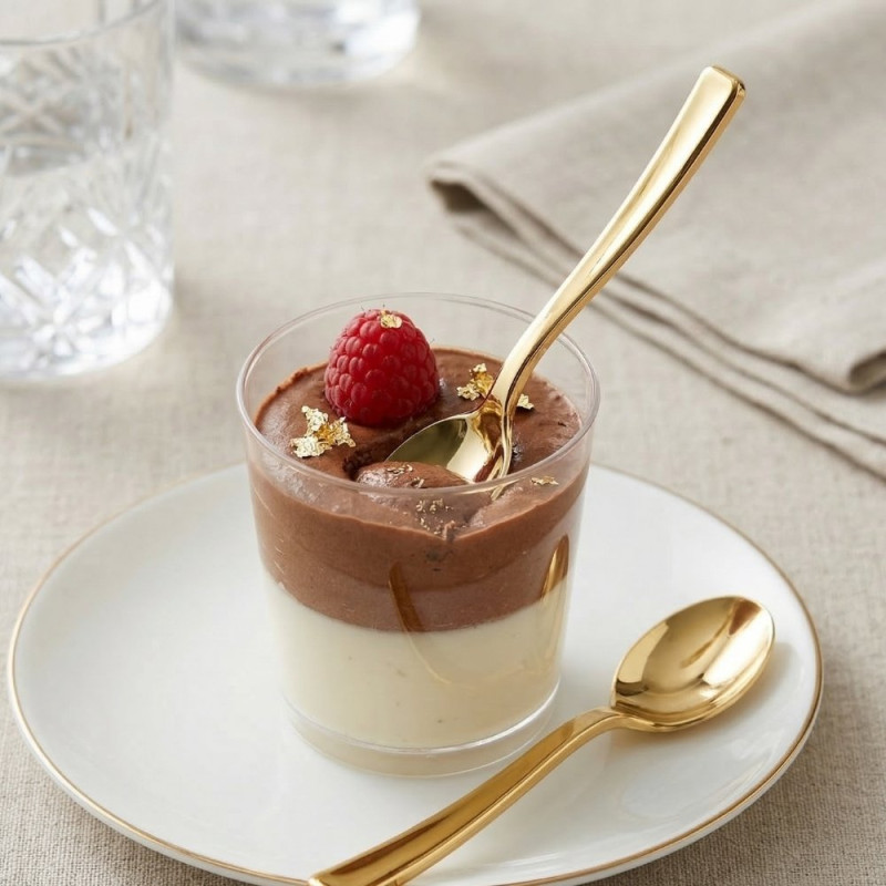 Cucharitas de plástico metalizadas color oro de 10 cm son un accesorio elegante y funcional pensado para la presentación de pequeñas degustaciones con un toque sofisticado. Están fabricadas en poliestireno alimentario, un material seguro para el contacto con alimentos que ofrece una solución práctica e higiénica para servir aperitivos, postres y muestras gastronómicas en todo tipo de eventos. Su tamaño compacto de 10 cm (100 mm) facilita una manipulación cómoda y precisa, permitiendo presentar porciones individuales de forma cuidada. El acabado metalizado dorado aporta una estética moderna y decorativa que realza la presentación de bandejas, mesas de catering y montajes gastronómicos.