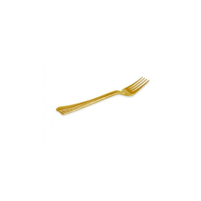 Tenedores de Plástico Dorados Lux de 17,5 cm Desechables. Fabricadas en PS (Poliestireno). Prácticos y elegantes a la hora de celebrar cualquier evento, fiestas, comidas, etc.
