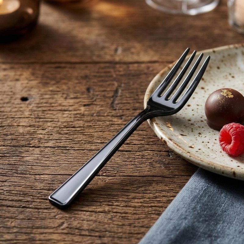 Gracias a su color negro y su tamaño reducido de 10 cm, estos tenedores de plástico son perfectos para destacar en bandejas de catering, bufés y vitrinas de exposición. El acabado liso y resistente del poliestireno aporta una presentación cuidada sin renunciar a la comodidad del menaje desechable. Su formato mini los hace especialmente adecuados para productos gourmet, aperitivos, tapas, postres o catas de producto.