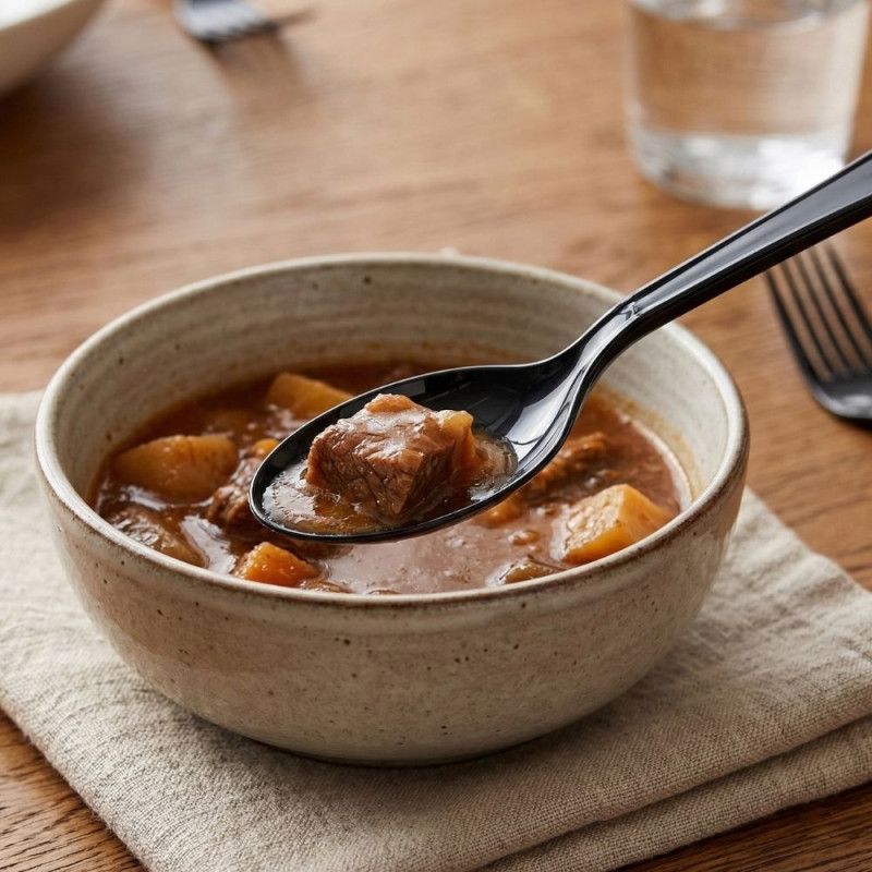 Gracias a su diseño robusto y estructura resistente, estas cucharas de plástico desechables no se doblan fácilmente, lo que las convierte en una opción fiable para comidas completas, postres o menús preparados. Además, son reutilizables hasta 25 lavados, lo que permite sacarles más partido en entornos donde se busque un equilibrio entre lo económico y lo práctico. Su color negro aporta un toque sobrio y moderno, perfecto para caterings, servicios de comida a domicilio y hostelería en general.
