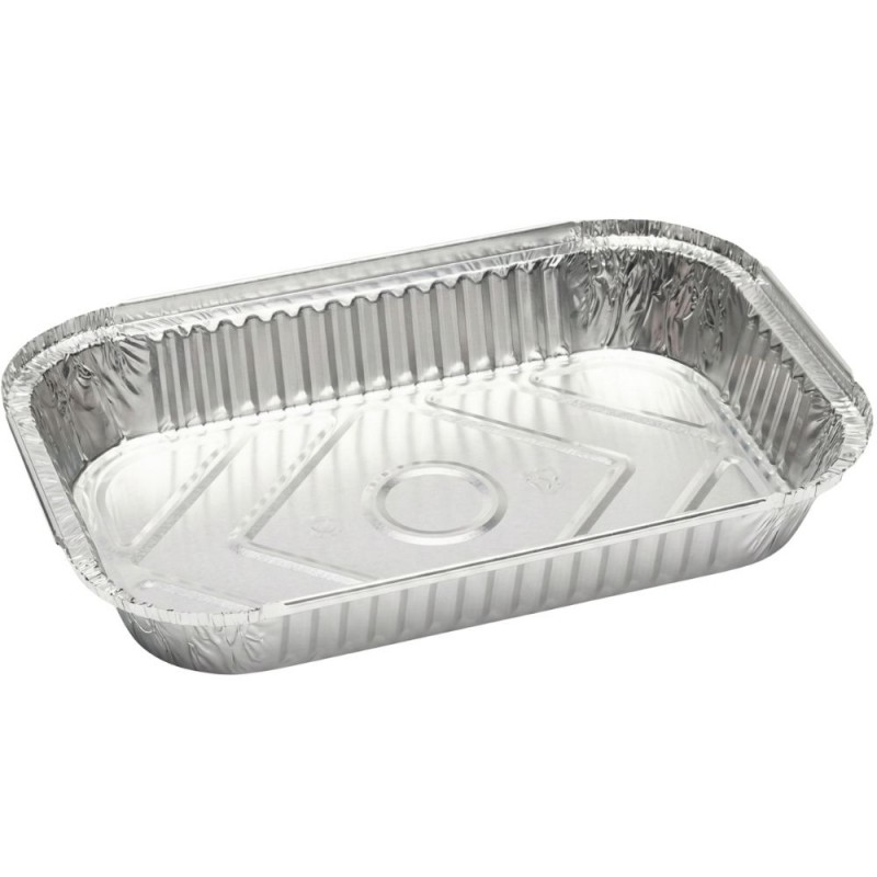 Estos envases rectangulares de aluminio están diseñados para ofrecer una solución segura y eficaz al almacenar, transportar y servir alimentos en entornos profesionales. Su fabricación en material de alta calidad permite contener preparaciones frías o calientes y, al ser aptos para horno, facilitan cocinar, recalentar o conservar directamente en el propio envase sin necesidad de recipientes adicionales. Su capacidad de 1.500 ml los convierte en una opción adecuada para raciones amplias que requieren un soporte resistente y estable.