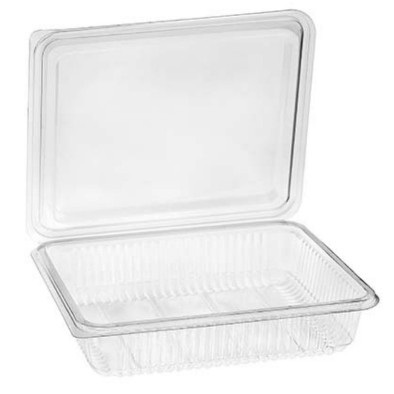 Envases Tarrinas de plástico con tapa bisagra H40 grande transparentes, fabricados en PET para uso alimentario. Perfectos para envasar todo tipos de alimentos loncheados, charcutería, como frutos secos, ensaladas, golosinas, comida preparada, etc. Indispensables en la hostelería, bares, restaurantes, comidas a domicilio y en cualquier ocasión donde sea necesario transportar alimentos.