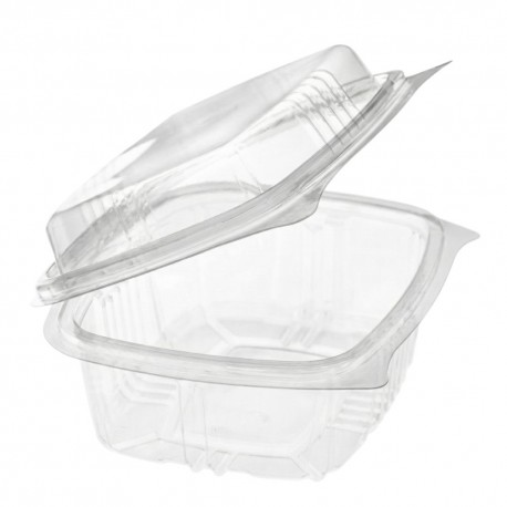 Envases Tarrinas de plástico con tapa bisagra de 1.000 ml transparentes, fabricados en PP (Polipropileno) para uso alimentario, aptos para microondas. Perfectos para envasar todo tipos de alimentos tanto calientes como fríos, frutos secos, ensaladas, golosinas, comida preparada, etc. Indispensables en la hostelería, bares, restaurantes, comidas a domicilio y en cualquier ocasión donde sea necesario transportar alimentos.