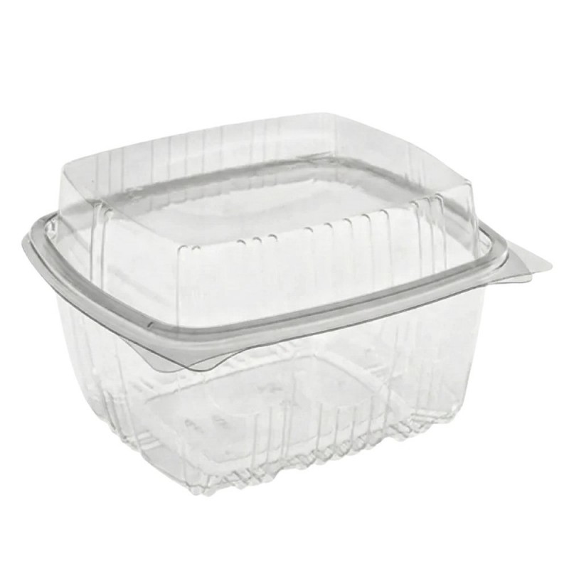 Tarrina de plástico PET con tapa alta plana bisagra de 1.000cc + 400cc en la tapa. Práctica y funcional, esta tarrina está fabricada en plástico PET de alta calidad, perfecta para el uso alimentario y con excelente transparencia. Diseñada con tapa alta tipo bisagra que proporciona 400cc adicionales, lo que aumenta la capacidad total a 1.400cc.