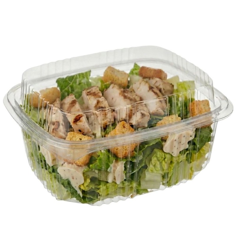 La tapa alta integrada aporta un cierre seguro y cómodo, evitando pérdidas durante el transporte y manteniendo la frescura del alimento. Con unas medidas de 19,5 x 15,5 cm y una altura de 10,7 cm, es un envase pensado para productos voluminosos o preparaciones que requieren espacio extra. El PET de alta calidad asegura resistencia a impactos y temperaturas entre -40ºC y +65ºC, lo que lo convierte en una opción fiable para alimentos fríos, refrigerados o recién preparados, siempre con la garantía de un envase alimentario seguro y firme.