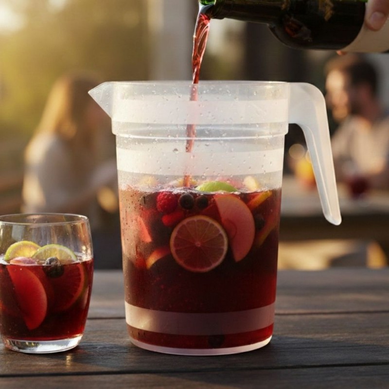 Las jarras de plástico de 1.000 ml están fabricadas en polipropileno (PP), un material muy resistente y reutilizable que destaca por su ligereza y durabilidad. Con una capacidad de un litro, estas jarras son perfectas para servir cervezas, sangrías, combinados, rebujitos y otras bebidas en gran formato. Su estructura firme y su diseño translúcido las convierten en una opción ideal para bares, chiringuitos, conciertos, fiestas o eventos donde se busca rapidez, higiene y comodidad en el servicio.