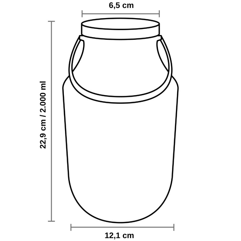 Lecheras de plástico de 2.000 ml con asa y tapa, fabricadas en poliestireno de alta densidad apto para uso alimentario. Son resistentes y seguras, perfectas para transportar bebidas frías o calientes como chocolate, granizados o cualquier preparación para llevar.
