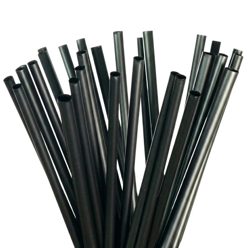 Las pajitas reutilizables negras rectas de plástico resistente, con Ø6 mm de diámetro y 20 cm de largo, son aptas para bebidas frías y calientes y reutilizables hasta 10 veces.