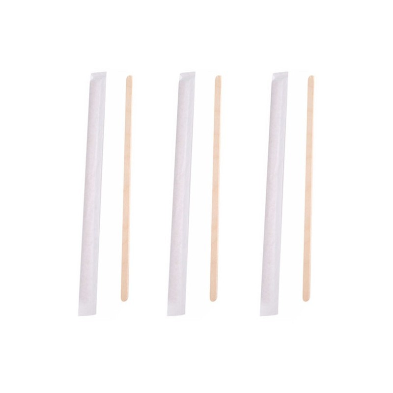 Removedores de madera ecológica de 9 cm enfundados individualmente en papel, pensados para ofrecer un servicio higiénico, sostenible y profesional en cafeterías, oficinas, servicios de catering o eventos. Fabricados con madera natural sin barnices ni aditivos, estos removedores desechables mantienen el sabor original de las bebidas y refuerzan el compromiso ambiental de tu negocio.
