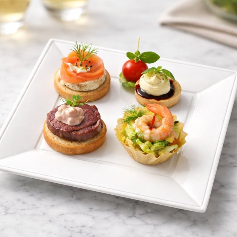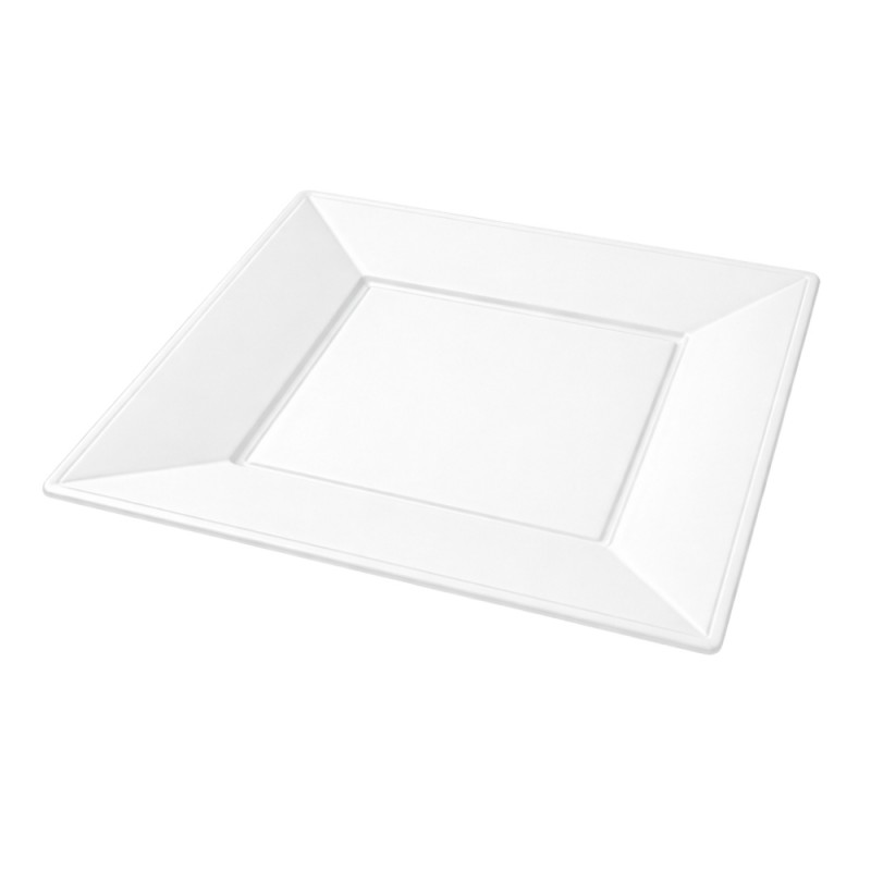 Los platos de plástico cuadrados blancos ofrecen una presentación elegante y diferenciadora para todo tipo de servicios de hostelería y eventos. Su diseño cuadrado y acabado limpio aportan un plus estético ideal para resaltar cada plato servido, desde degustaciones individuales hasta postres y tapas. Están fabricados en poliestireno alimentario (PS), un material resistente, ligero y seguro para uso alimentario.