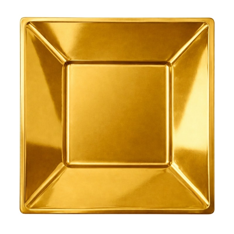 Platos de Plástico Hondos Cuadrados Desechables Dorados de 17cm. Fabricados en PS (Poliestireno). Unos platos de plástico elegantes por su forma y acabado. Si buscas resaltar tú producto en cualquier degustación, catering, restaurante, fiestas, etc, este plato de plástico cuadrado hondo es el perfecto. Ideales para servir cualquier tipo de comida.