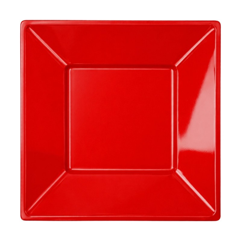 Platos de Plástico Hondos Cuadrados Rojos de 17cm. Fabricados en PS (Poliestireno). Unos platos de plástico elegantes por su forma y acabado. Si buscas resaltar tú producto en cualquier degustación, catering, restaurante, fiestas, etc, este plato de plástico cuadrado hondo es el perfecto. Ideales para servir cualquier tipo de comida.