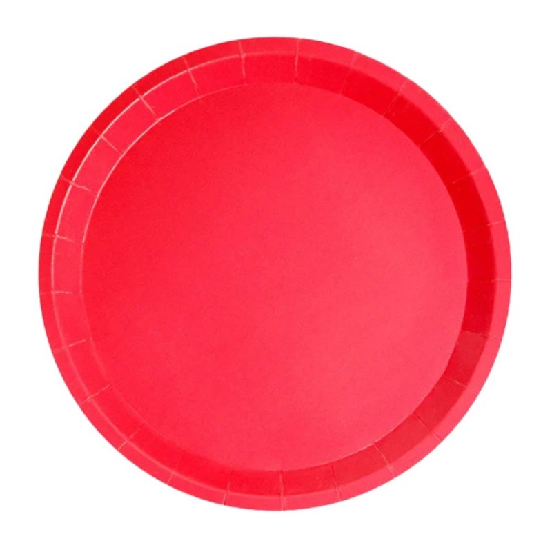 Platos rojos de cartón biodegradables redondos desechables de 20 cm. Fabricados en cartón libre de plástico, elige para tus celebraciones y eventos platos desechables ecológicos, respeta el medio ambiente y la naturaleza. Son 100% Platos Biodegradables y 100% Reciclables. Aptos para alimentos secos y con bajo contenido graso.