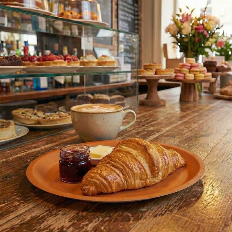 El material de cartón libre de plástico aporta solidez y mantiene el equilibrio entre funcionalidad y estilo, permitiendo ofrecer una experiencia cómoda en todo tipo de eventos. Su acabado en color naranja intensifica la presentación de cada ración y crea mesas visualmente atractivas sin necesidad de recurrir a materiales menos ecológicos. Su naturaleza biodegradable refuerza el compromiso ambiental y convierte estos platos en una opción práctica, estética y alineada con valores sostenibles.