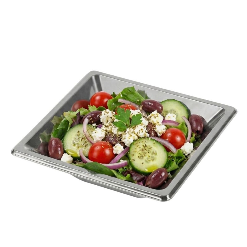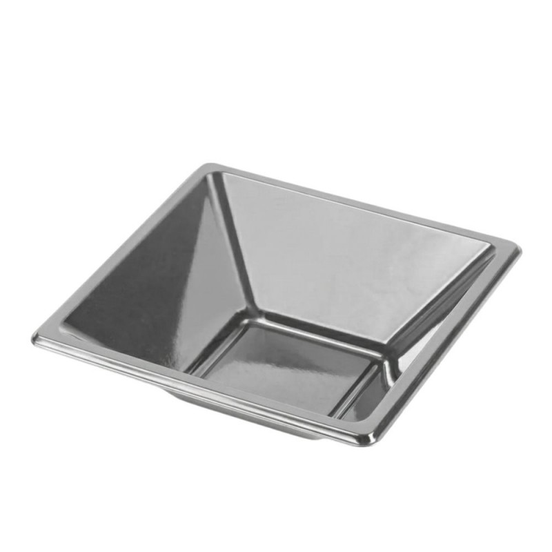 Los cuencos cuadrados de plástico dorado son una solución pensada para quienes buscan aportar lujo y distinción en la presentación de alimentos durante eventos especiales. Están fabricados en poliestireno alimentario (PS), un material adecuado para el contacto con alimentos que combina funcionalidad y una cuidada estética sofisticada. Son ideales para servir aperitivos, ensaladas o postres, ofreciendo una imagen elegante que realza cada elaboración sin necesidad de vajilla tradicional.