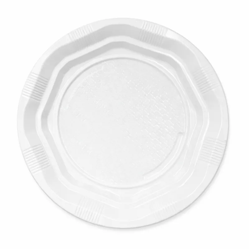 Platos de Plástico Redondos Hondos Blancos de 20,5cm. Fabricados en PS (Poliestireno). Este plato por su tamaño es llamado también Plato de Plástico Hondo. Ideales para servir cualquier tipo de comida.
