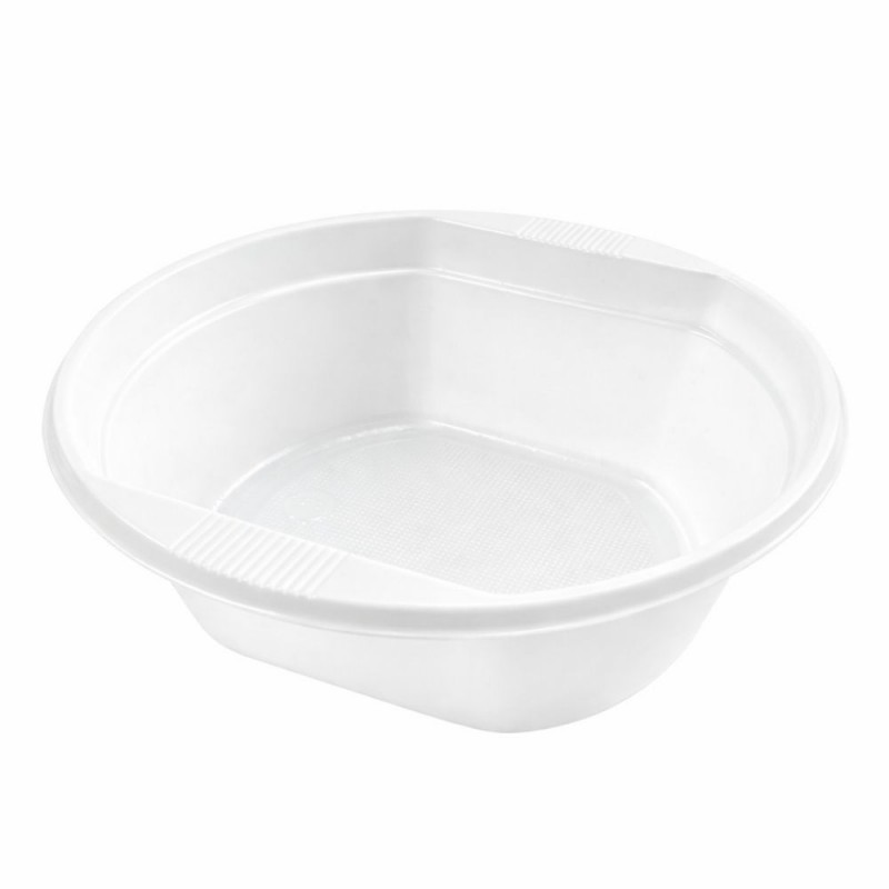 Bols de plástico desechables fabricados en poliestireno alimentario (PS), presentados en cajas de 180 unidades distribuidas en 30 paquetes de 6. Su diseño redondo, acabado blanco brillante y capacidad generosa los convierten en una excelente opción para negocios de hostelería que necesitan un cuenco práctico, higiénico y económico para servir raciones frías o templadas con una presentación cuidada.