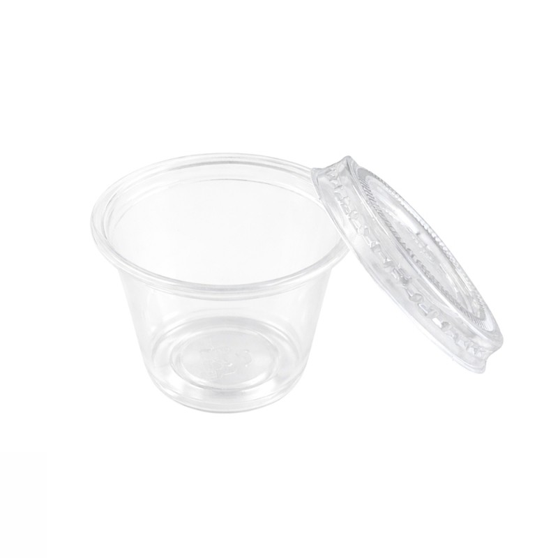 Salseras de plástico transparentes con tapa de 30 ml, fabricadas en polipropileno (PP) para el envase y PET para la tapa, lo que garantiza resistencia y un cierre fiable. Estas tarrinas pequeñas están diseñadas para servir salsas, aliños y condimentos, evitando derrames y desperdicios. Su acabado transparente aporta una presentación limpia y profesional, perfecta tanto para el servicio en mesa como para pedidos de comida a domicilio.