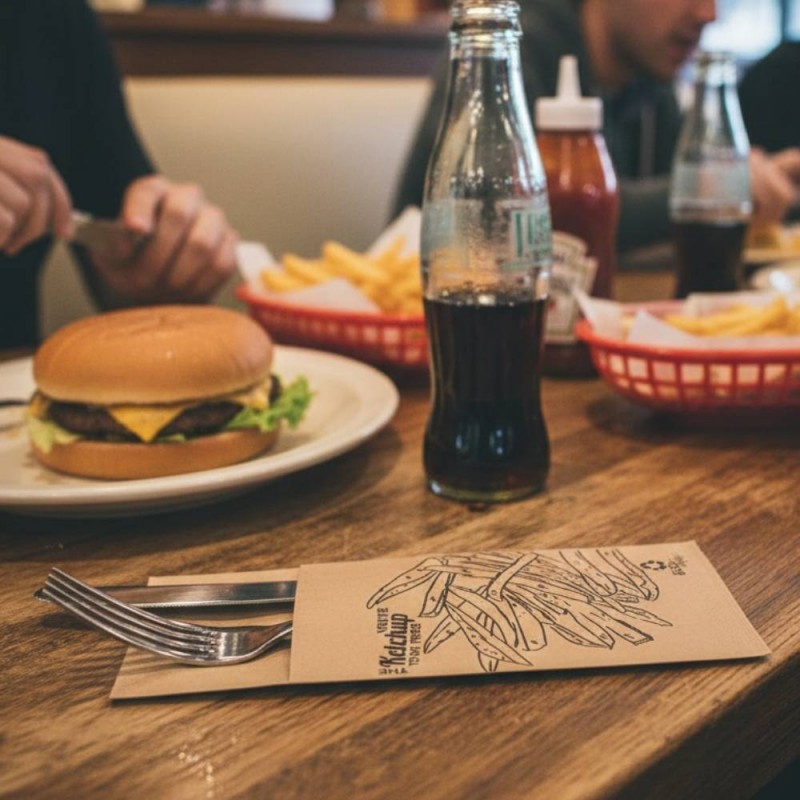 Elaboradas con papel ecológico de dos capas y acabado punta-punta, destacan por su resistencia y suavidad al tacto, asegurando confort e higiene en cada uso. El modelo Ketchup aporta un estilo original y llamativo a la mesa, reforzando la imagen de tu negocio y aportando un valor añadido en la presentación. Su diseño tipo canguro permite introducir los cubiertos de manera higiénica y ordenada, optimizando el servicio de mesa y transmitiendo profesionalidad a tus clientes.