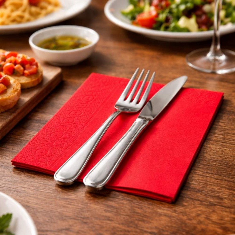 Las servilletas de papel rojas 33 x 33 cm en formato caja son la mejor opción para negocios de hostelería y catering que necesitan grandes volúmenes de suministro con un toque de color. Con un tamaño plegado de 16,5 x 16,5 cm, ofrecen practicidad e higiene en cada uso, al tiempo que aportan una presentación llamativa y cuidada en mesas de restaurantes, bares y eventos.