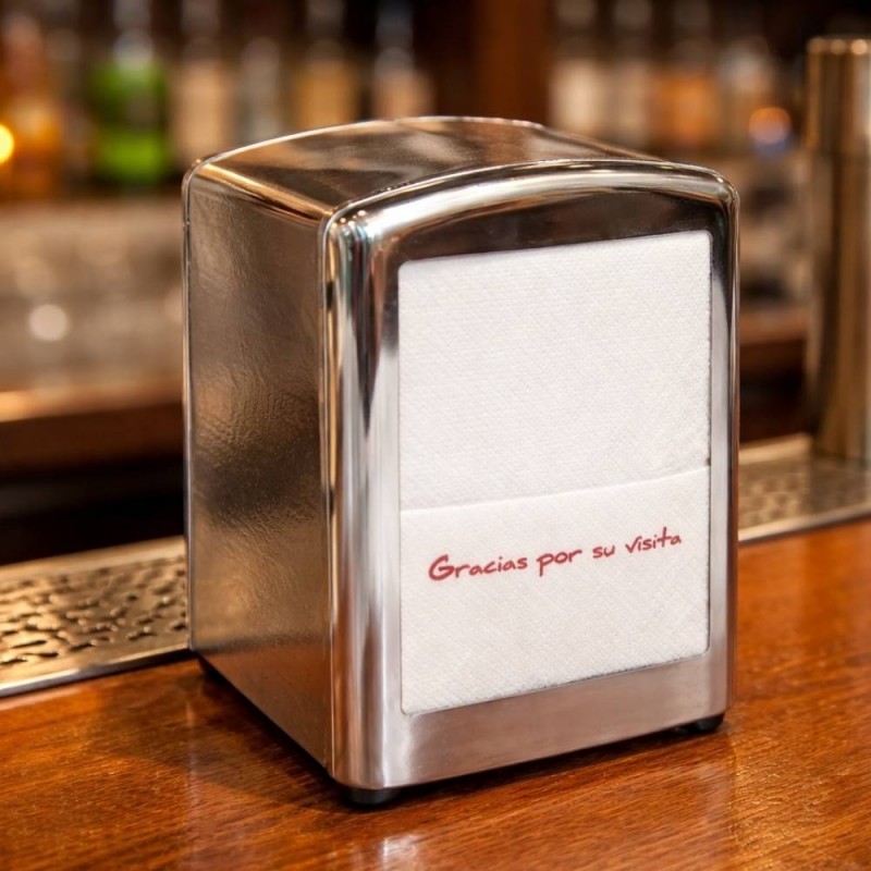 Servilletas de Papel Miniservis de 17 x 17 cm, fabricadas en papel sulfito. Perfectas para dispensadores y servilletros de Bares, Cafetería, Restaurantes, etc.