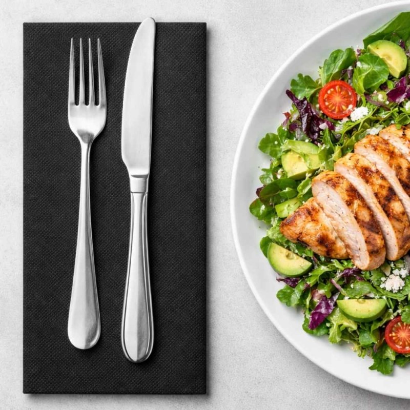 Confeccionadas en papel punta-punta de 2 capas, destacan por su suavidad, absorción y resistencia. Su tamaño de 40x40 cm, plegado en formato 1/8 (10x20 cm), facilita su uso en servicios de mesa y degustaciones, ofreciendo una solución versátil que combina estética y practicidad. El color negro aporta un aire elegante y moderno, ideal para dar un toque distintivo en presentaciones formales o temáticas.