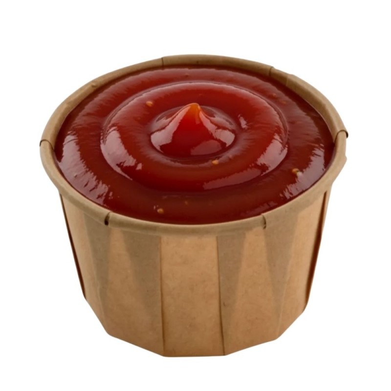Las tarrinas de papel Kraft plisado de 60 ml, fabricadas en papel alimentario antigrasa, son aptas para alimentos fríos y calientes, ideales para salsas, postres y aperitivos.