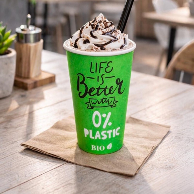 Los vasos biodegradables de cartón de 480ml son una solución ecológica y desechable ideal para negocios que buscan cuidar su imagen y el medio ambiente. Están fabricados íntegramente en papel, sin recubrimientos plásticos, lo que los convierte en una alternativa sostenible a los vasos convencionales. Su diseño impreso y su tono verde refuerzan el compromiso con la sostenibilidad en cafeterías, take away y eventos profesionales.