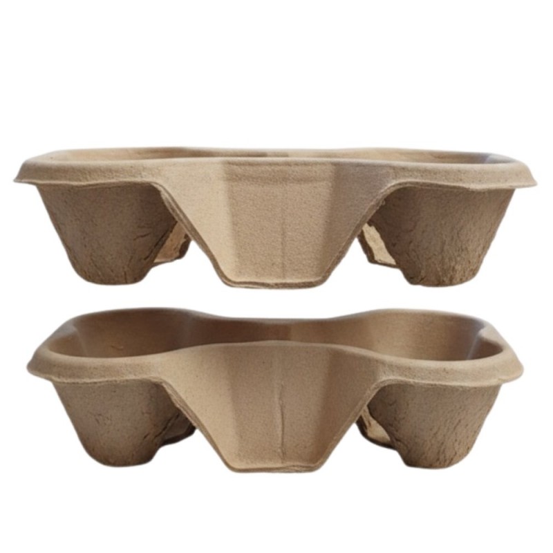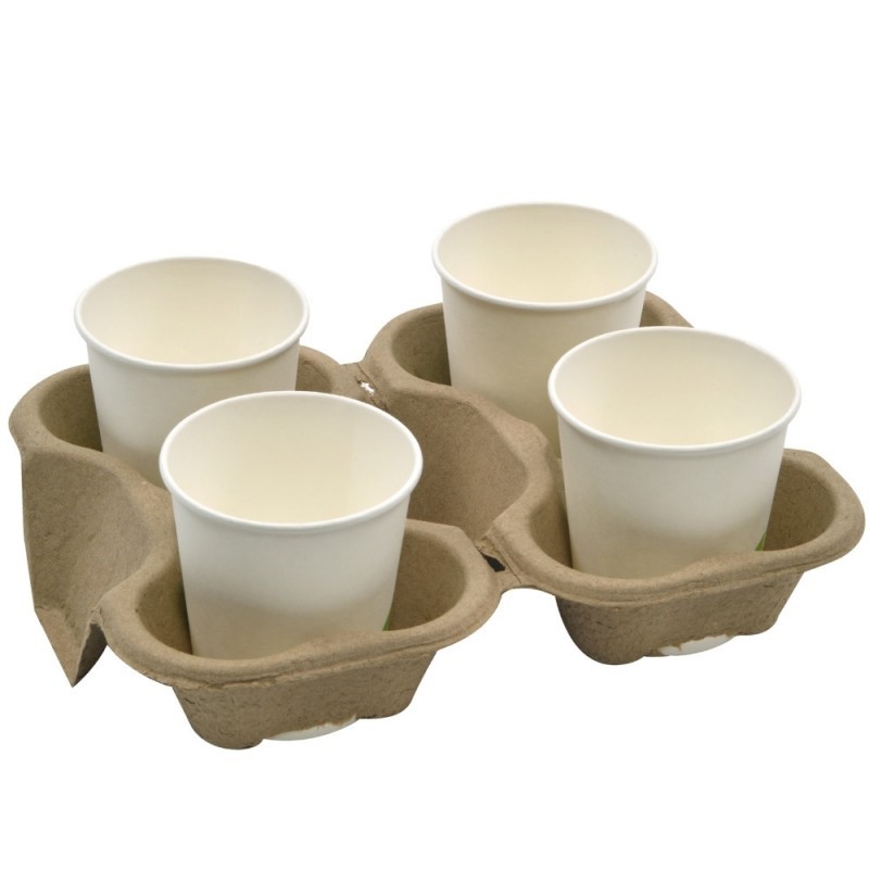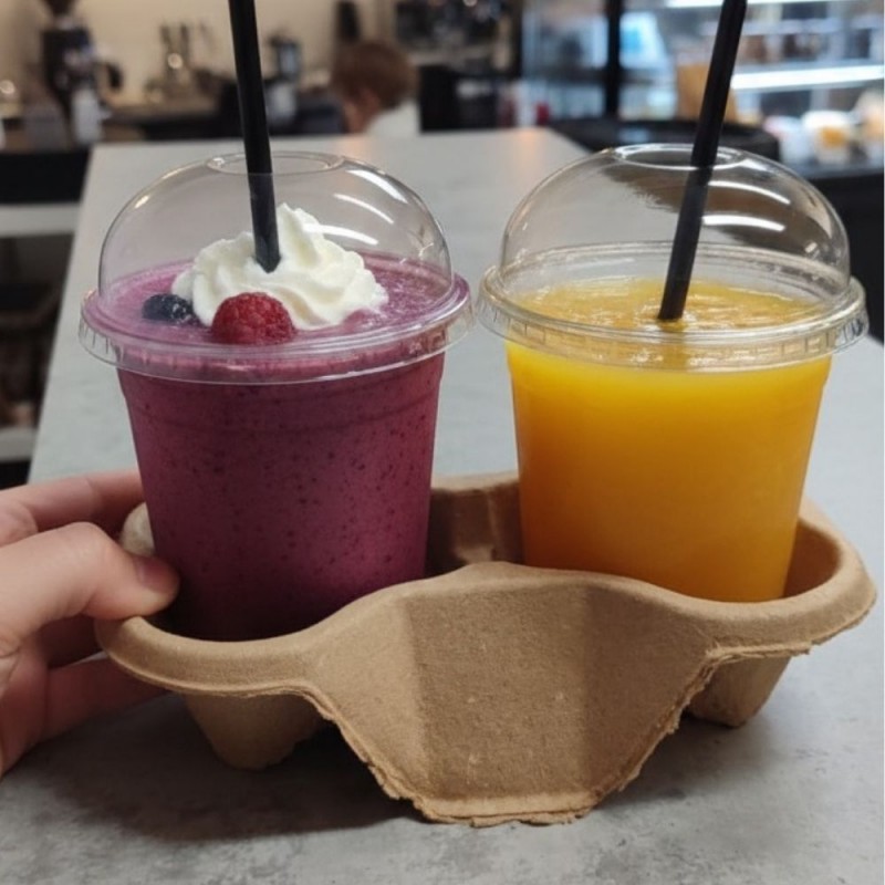 Se presenta en paquetes de 50 unidades con capacidad para 4 vasos cada uno, aunque al separarlos se obtienen hasta 100 soportes para 2 vasos. Esta versatilidad facilita el uso según la cantidad de bebidas servidas, optimizando costes y espacio. Un complemento imprescindible para servicios de café take away y delivery sostenible.