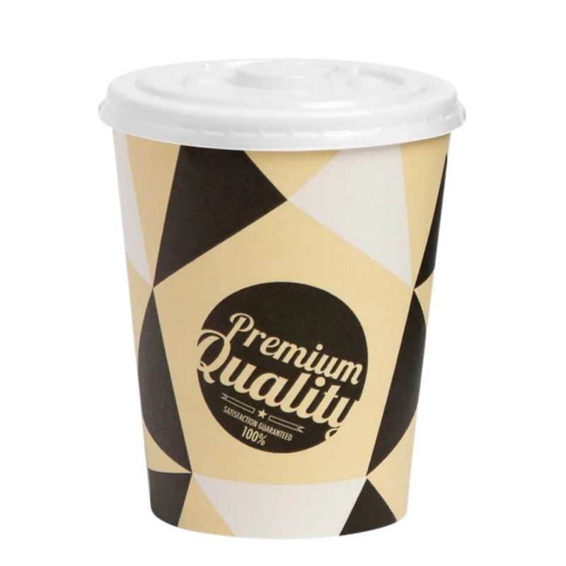 Con una capacidad de 200 ml y un diámetro superior de 7,2 cm, estos vasos son prácticos y fáciles de sujetar, pensados tanto para consumos rápidos en el local como para servicio para llevar. Incluyen tapas planas fabricadas en plástico, que se ajustan perfectamente al vaso y ayudan a evitar derrames durante el transporte, ofreciendo mayor seguridad al cliente. Se presentan en paquetes de 25 unidades (25 vasos y 25 tapas), ideales para negocios que necesitan flexibilidad y adaptarse a distintas demandas de consumo diario.