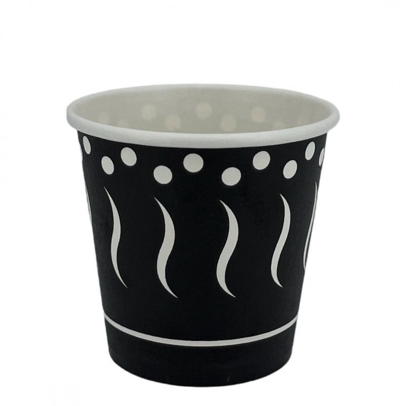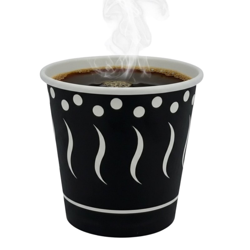 Ver más grande Vasos de Cartón Negro Coffee con capacidad para 120 cc. Estos Vasos Desechables de Cartón son ideales para bebidas calientes y frías, como café, té, infusiones, degustaciones, licores, etc. Opcionalmente esta disponible la tapa tapa drink de Ø6,2cm. para este vaso.