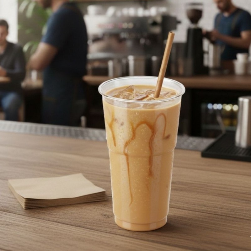 Fabricados en PET de alta calidad, estos vasos de plástico desechables destacan por su transparencia cristalina, rigidez estructural y resistencia a temperaturas de entre -40 °C y +65 °C. Con una altura de 15 cm y una base de 6,6 cm, ofrecen estabilidad y una gran capacidad útil para bebidas voluminosas o decoradas. Su diseño amplio permite incluir crema, fruta, hielo o toppings sin sacrificar comodidad ni presentación, lo que los convierte en una opción recurrente en servicios de bebidas frías premium.