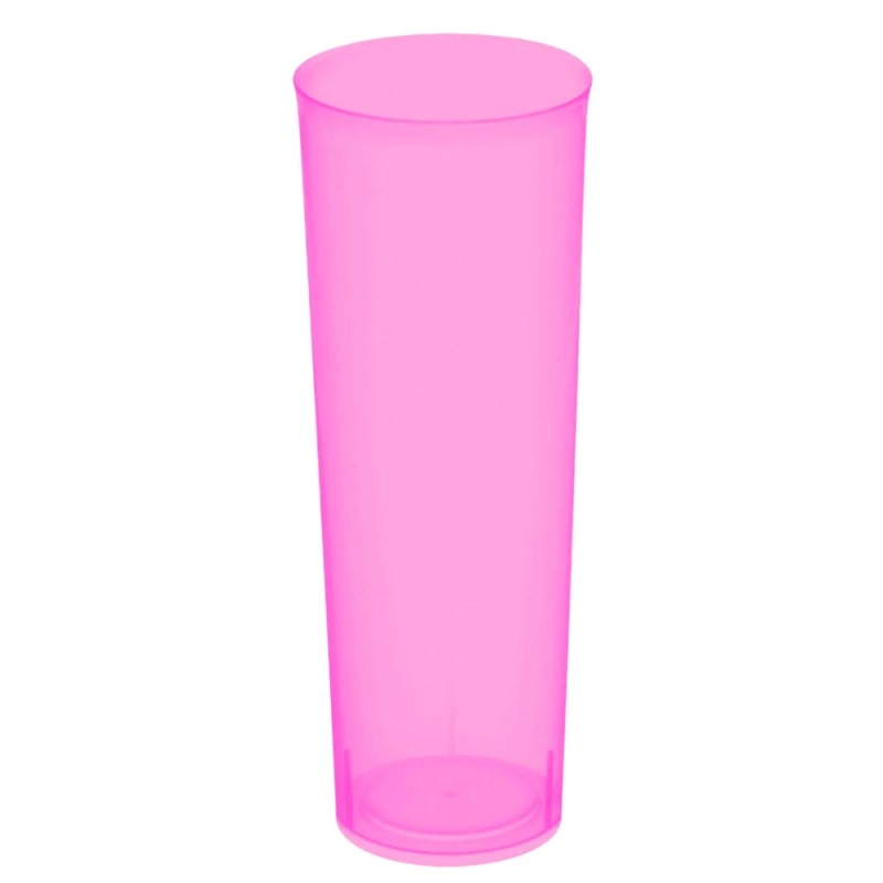 Vasos de Plástico PP (Polipropileno) Tubo color Fucsia Flúor con capacidad para 300 cc. Estos Vasos Desechables de Plástico son ideales para cubatas, cervezas, combinados, etc.