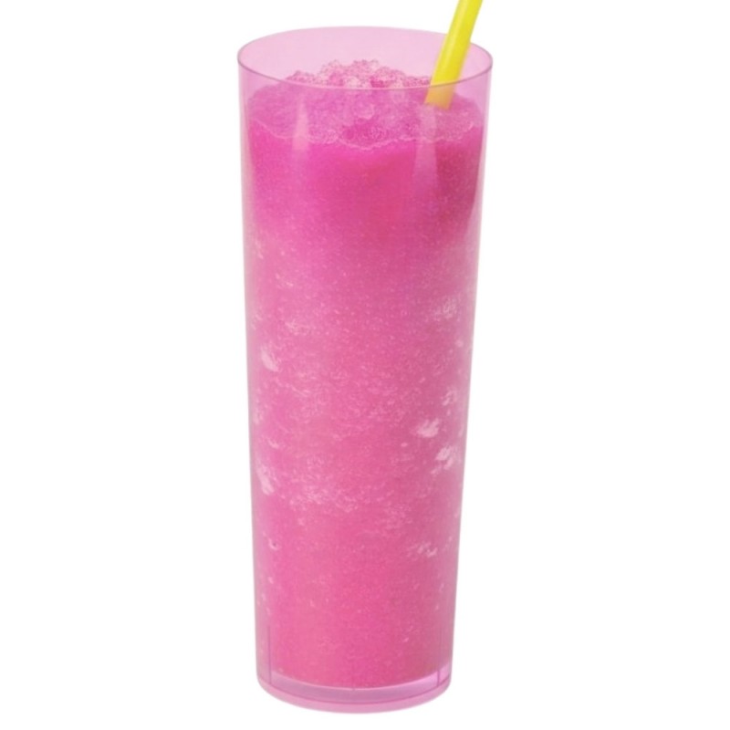 Vasos de plástico de tubo con capacidad de 300 ml, fabricados en polipropileno (PP) de alta calidad y presentados en un llamativo color fucsia flúor translúcido. Su diseño alargado y estilizado, junto con el acabado brillante, los convierte en una opción visualmente atractiva para cualquier servicio de bebidas. Cada paquete incluye 6 unidades, perfectas para pequeñas necesidades o pruebas de producto antes de comprar en volumen.