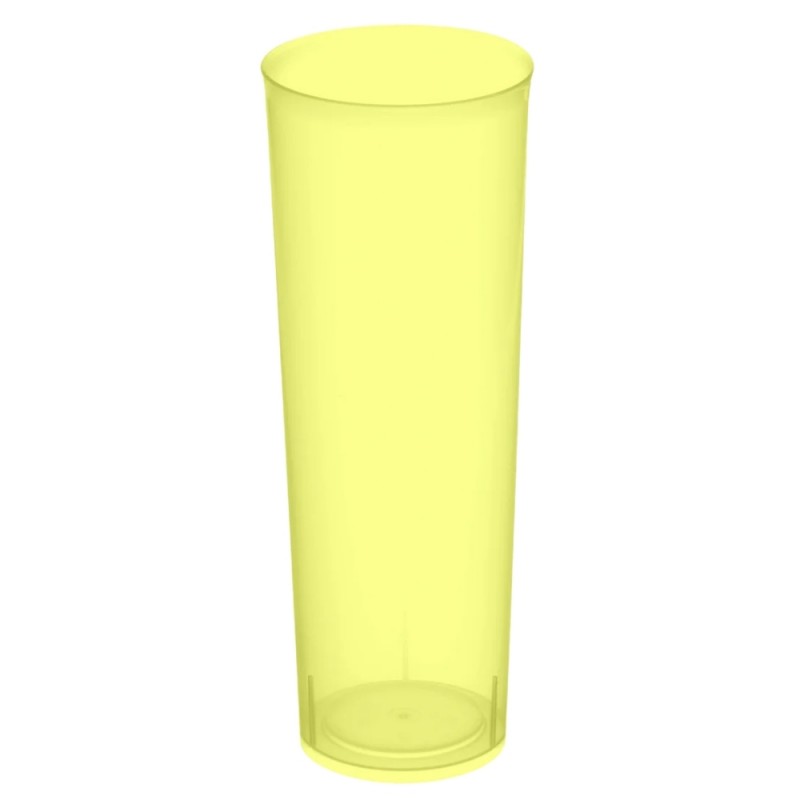 Vasos de Plástico PP (Polipropileno) Tubo color Amarillo Flúor con capacidad para 300 cc. Estos Vasos Desechables de Plástico son ideales para cubatas, cervezas, combinados, etc.