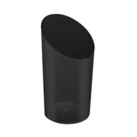 Vasos degustación catering rombo en plástico negro desechables. Vasitos rombo degustación para Catering originales, prácticos y de alta calidad aptos para presentar todo tipo de aperitivos. Fabricados en poliestireno alimentario efecto cristal. Capacidad: 120ml/120cc. Medidas: 5,8 x 5,8 x 5,3cm