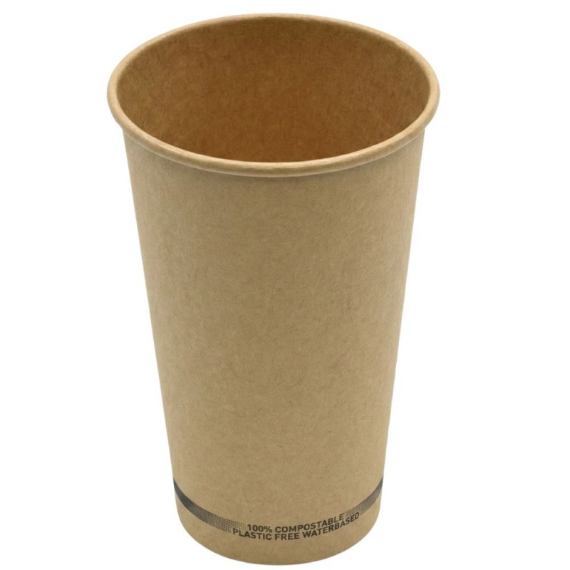 Los vasos de cartón Kraft 16Oz/480ml Ø9cm, fabricados en papel kraft compostable, son ideales para servir bebidas calientes o frías en negocios y eventos, ofreciendo resistencia, estética natural y un uso sostenible.