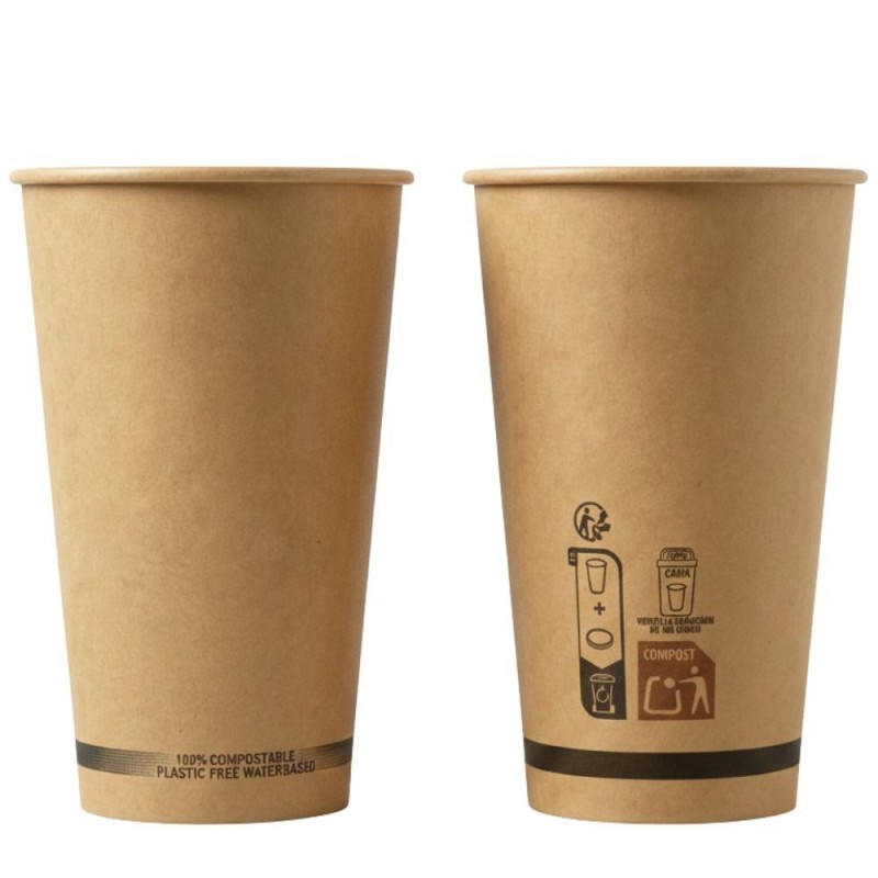Los vasos biodegradables de cartón Kraft 16Oz/480ml Ø9cm se presentan como una solución práctica y responsable para servir bebidas en entornos profesionales. Fabricados en papel kraft 100% compostable, ofrecen un rendimiento fiable sin comprometer el compromiso ambiental. Su capacidad de 480ml los hace adecuados para cafés, tés, infusiones y bebidas frías, resultando especialmente útiles en cafeterías, servicios para llevar y eventos donde se valore la sostenibilidad.