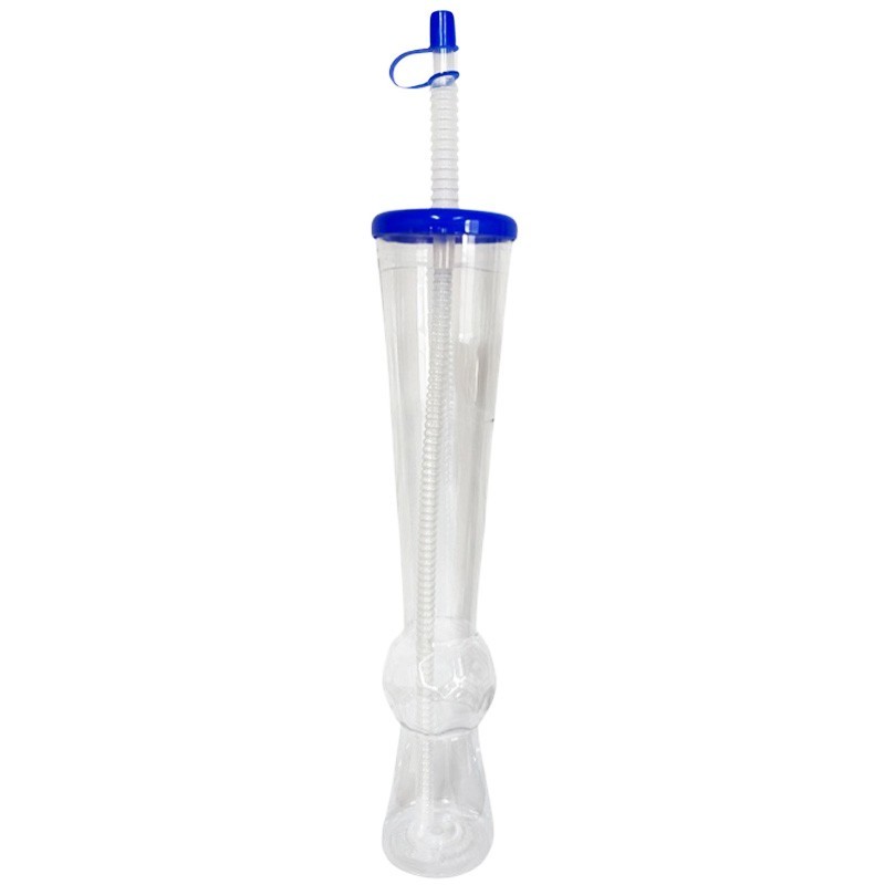 Vasos Yarda de plástico de 500 ml en PET alimentario con tapa y pajita en PP, diseño de 29,2 cm y base de 6,2 cm, ideales para bebidas frías o templadas en fiestas y eventos por su estilo llamativo y práctico.