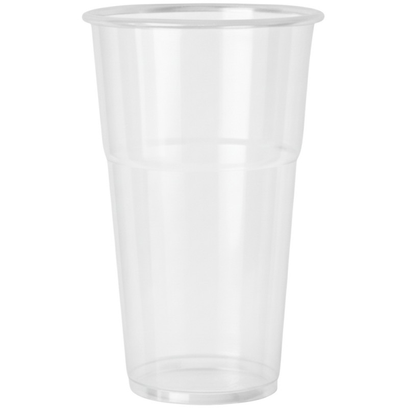 Vasos de plástico transparentes desechables de 600 ml, fabricados en polipropileno alimentario PP, resistentes y flexibles, aptos para bebidas frías y calientes en hostelería, eventos y celebraciones.